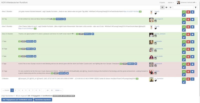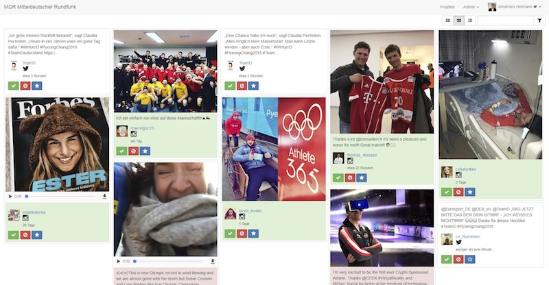 Aufgabe: Social Media Integration. Verschiedener Beiträge für sportrelevante Themen filtern und im TV live visualisieren. Für alle Sportschauproduktionen.