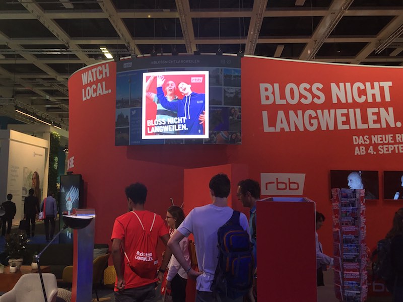Einsatz sendONSCREEN®: Alle unter dem RBB Hashtag eingegangen Bilder und Posts wurden redaktionell im sendONSCREEN Redaktionssystem gefiltert. Die besten wurden freigegeben und auf der Messewall gezeigt.