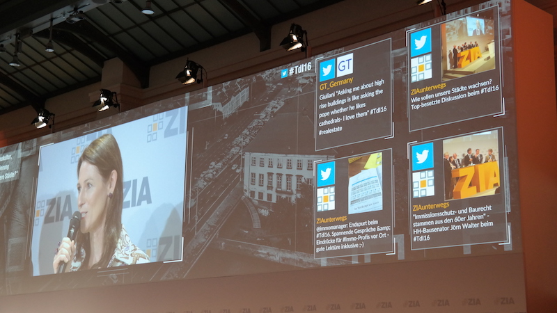 Aufgabe: Die Live-Visualisierung der interessantesten Twitterbeiträge des Publikums auf dem Kongress des Zentralen Immobilienausschusses.