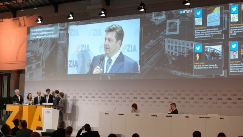 Einsatz sendONSCREEN®: Die ZIA Redaktion filtert im sendONSCREEN Redaktionssystem die relevantesten Twitterbeiträge. Über die Regie spielt ein Operator die Livetweets auf die Leinwand. Dort sind die Beiträge während aller Vorträge und Diskussionsrunden sichtbar und sorgen so für Interaktion.